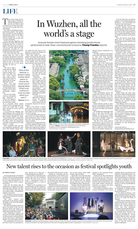 For its 10th edition, this year's festival is host to a range of international productions, some of which have also used Wuzhen's theater venues as settings.