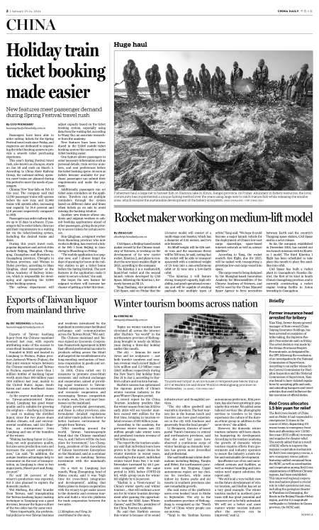 She said traditional winter destinations including Beijing, Tianjin and Hebei, the northeastern provinces and the Xinjiang Uygur autonomous region are top choices for travelers, while some indoor ice theme parks and ski resorts in southern provinces also saw remarkable growth.