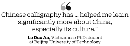 "Chinese calligraphy has not only helped me cultivate qualities of patience, care and perseverance, it has also helped me learn significantly more about China, especially its culture," An says.