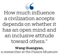 "How much influence a civilization accepts depends on whether it has an open mind and an inclusive attitude toward others," Wang Guangyao, a researcher at the Palace Museum, says.