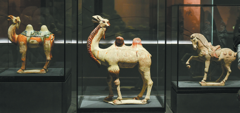 In the center of the gallery, a cluster of Tang pottery figurines known as sancai grab attention. They include figurines of camels and merchants from West and Central Asia. In spite of their age, their glaze and vividly portrayed facial expressions still seem fresh, and remind people of the importance of exchanges.