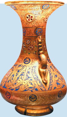 An enameled and gilded glass vase with ancient Islamic patterns.