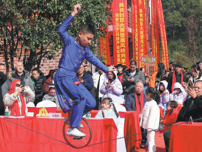 Tourists watch a performer during a rural cooking competition in Pingxiang, Jiangxi province, on Saturday. Pingxiang, renowned as the spicy food capital of China, has leveraged its food culture to drive integrated development across sectors such as culture and tourism, infusing vitality into the economy.
