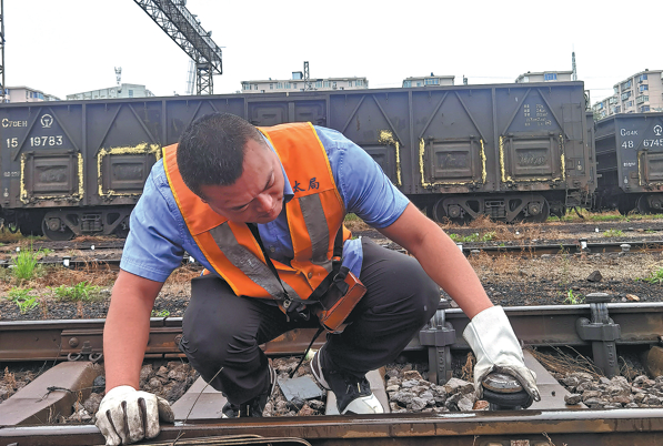 An employee from Taiyuan North Railway Station in Shanxi province inspects rail facilities during an autumn overhaul and assessment drive. Workers have examined 82 shunting devices at 52 stations on six main lines within its jurisdiction, in a bid to ensure safe rail transport.