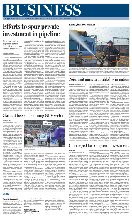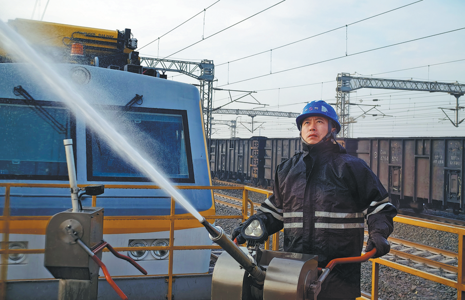An employee of China Railway Taiyuan Group, the local branch of national railway operator China State Railway Group Co Ltd, services insulators at a depot supporting the Datong-Qinhuangdao Railway, in Datong, Shanxi province, to ensure safe operation of heavy-haul trains carrying coal. The city is a major coal center, producing 162 million metric tons of raw coal last year.