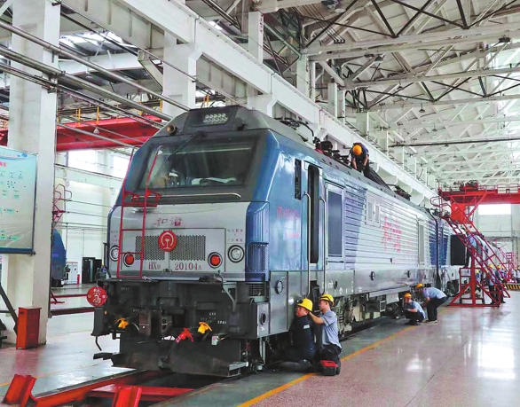 Staff members of Houma North Locomotive Depot in Shanxi province conduct thorough maintenance inspections on electric locomotives. The depot aims to safeguard the operation of locomotives running on railway lines under its jurisdiction.