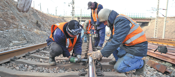 Employees from Qinhuangdao West Engineering Section in Hebei province conduct inspections of rail equipment on the Datong-Qinhuangdao line in response to winter weather. They aim to accurately spot equipment defects and take remedial measures to safeguard transport by the railway, which hauls some 350 million metric tons of coal each year.